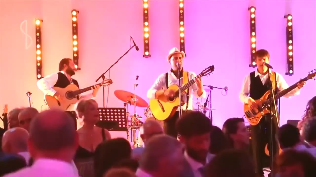 We are available as a duo, trio or 4-piece band. The duo (Javier on guitar and vocals + bass or guitar) and trio (Javier + bass + percussion) options are recommended for events with up to around 60 people, such as reception drinks, wedding breakfast, summer parties, BBQs or any corporate event where refreshing live music is needed in a limited space.