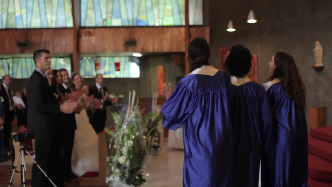 "Un groupe de gospel à la hauteur de nos espérances ! Il était convenu que ce soit une prestation surprise pour les invités à l’église et ça a été plus que réussi ! Les invités ont été plus que ravis et émus et nous aussi. Des voix magnifiques, nous nous sommes crus dans un film où le romantisme et la magie étaient les maîtres mots. Merci encore pour cet intense moment !!"