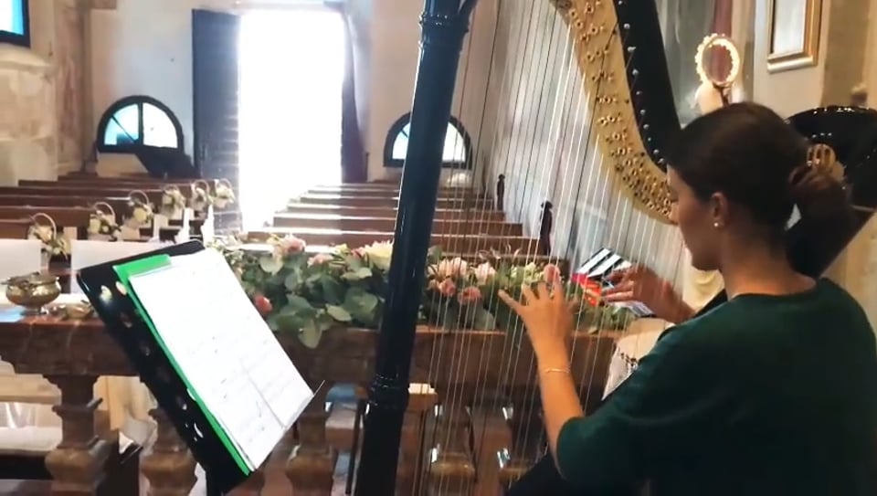 "Sofi is an elegant discreet professional harpist and has a vast repertoire. She also satisfied my special requests. Every moment of the ceremony was accompanied by sweet sweet music suited to the situation. Even alone in a very large church, the harp filled everyone's hearts. Very good!"