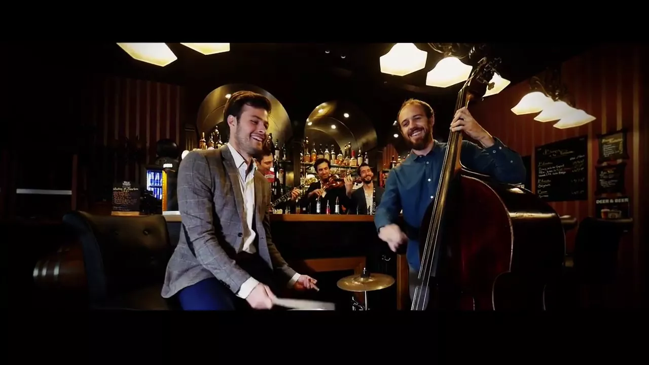 The Montpellier Jazz Band consists of Joseph (banjo, singer and arranger), Pierre (clarinet, bass clarinet and singer), Heykel (violin, singer), Alexis (guitar, singer), Gildas (double bass, singer) and Simon (drums).