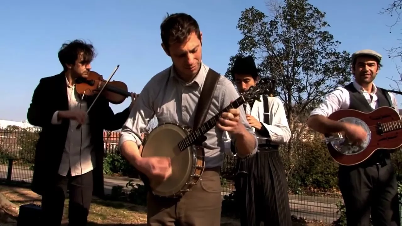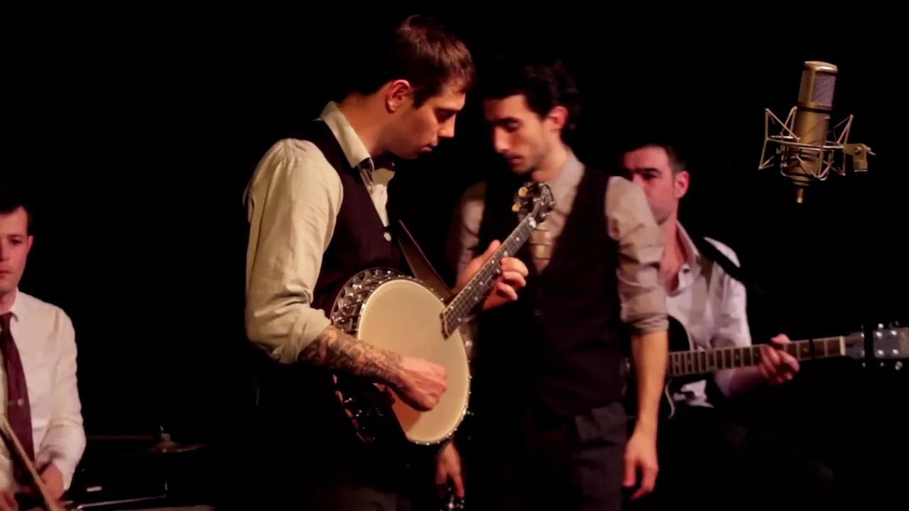 The unusual orchestration reminiscent string bands of the era and the sung parts in vocal quartet give the band a uniquely charming sound.