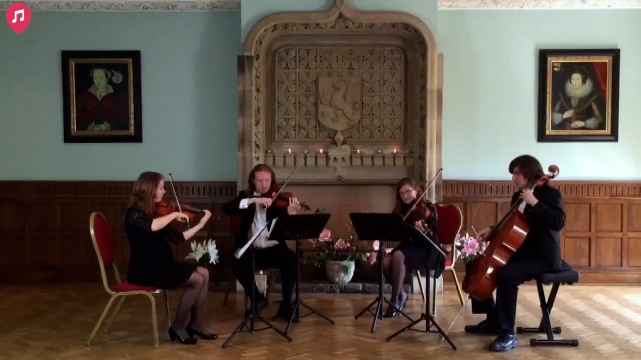 "Cymru String Quartet played at our wedding last month and they were absolutely brilliant! They have such a great selection of music and they were hassle-free to book, they set a lovely mood during our wedding breakfast and then they played outside also. They looked amazing and smart! Love them!"