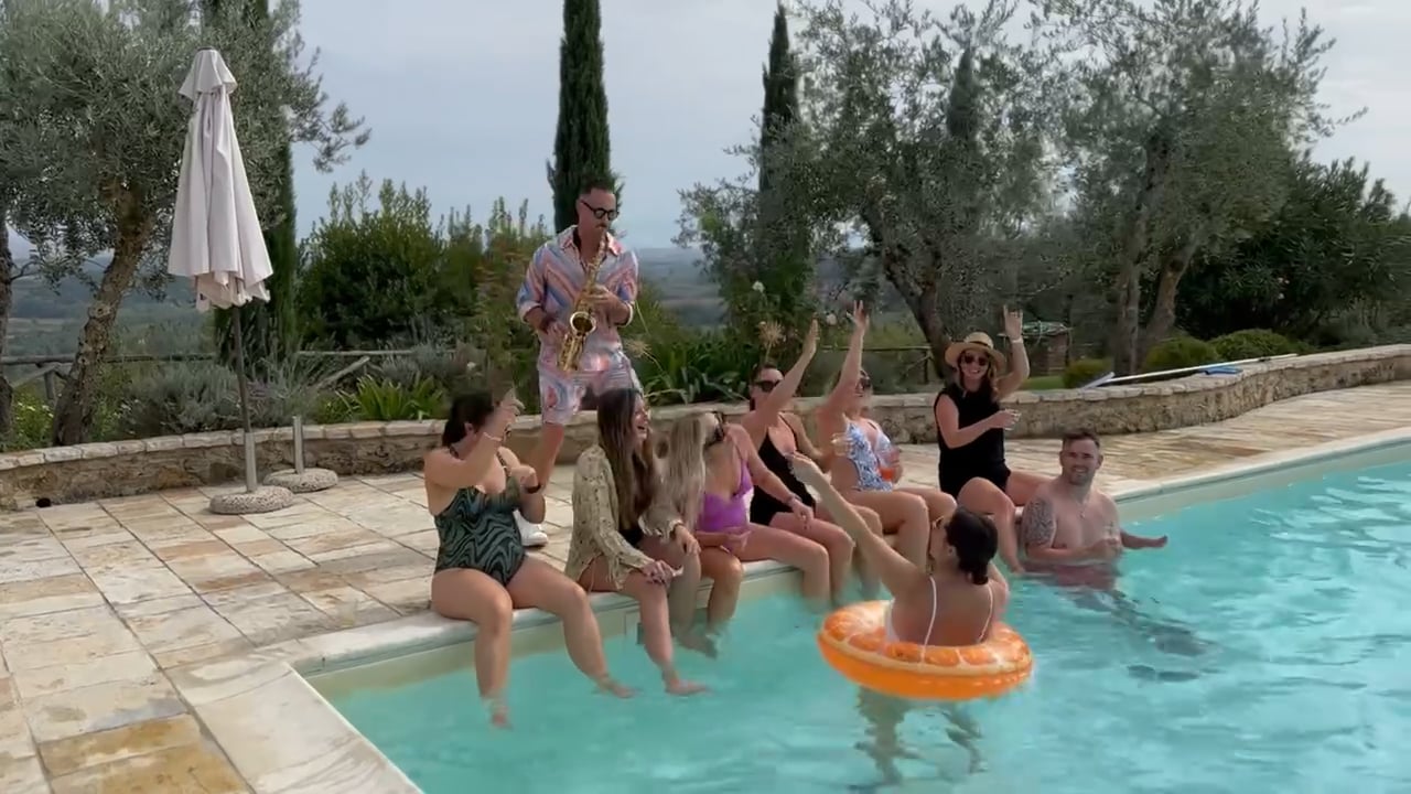 "We hired Jo Sax & DJ for our wedding in Tuscany and we couldn’t be happier with them. They did an amazing job from the ceremony during the day, aperitivo, dinner and party and exceeded all of our expectations. One of the guests said she didn’t want to leave the dance floor to go to the bathroom because all the songs were so good, and they brought an amazing vibe to the party. They are very kind and easy to work with, we would highly recommend them!"