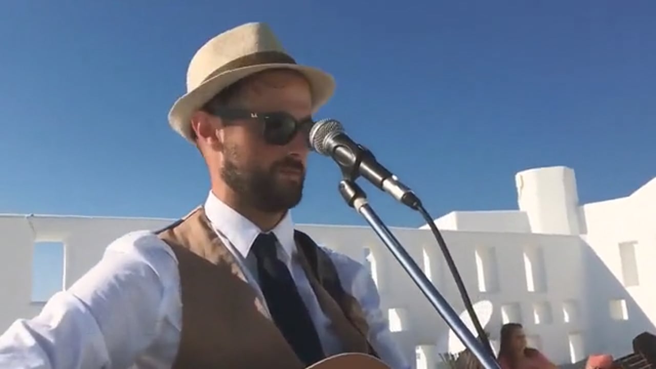 "We met Louis in Santorini and I just KNEW he had to perform at our wedding! Louis was a brilliant mix of friendly and professional and we really couldn't recommend him enough. Everything was top notch and his performance was amazing!! He executed our entrance/exit songs and playlist perfectly and even strummed the guitar quietly and beautifully throughout our vows. A cherry on top! In addition to having an unforgettable wedding, we can now call Louis a friend! See you in Santorini, Louis. We truly thank you from the bottom of our hearts!! Xxx - Laura & Nikos."